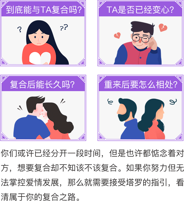 塔罗牌算的真的是太准了,完全说出了我们之间存在的问题,也给了我建议,我知道该怎么做了!